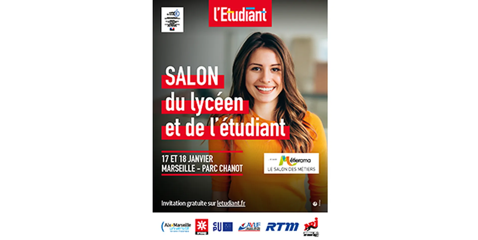 Nous vous invitons à venir nous rencontrer au Salon du Lycéen et de l'Etudiant organisé par L'étudiant et Métierama les 17 et 18 Janvier 2020 au Parc Chanot à Marseille !