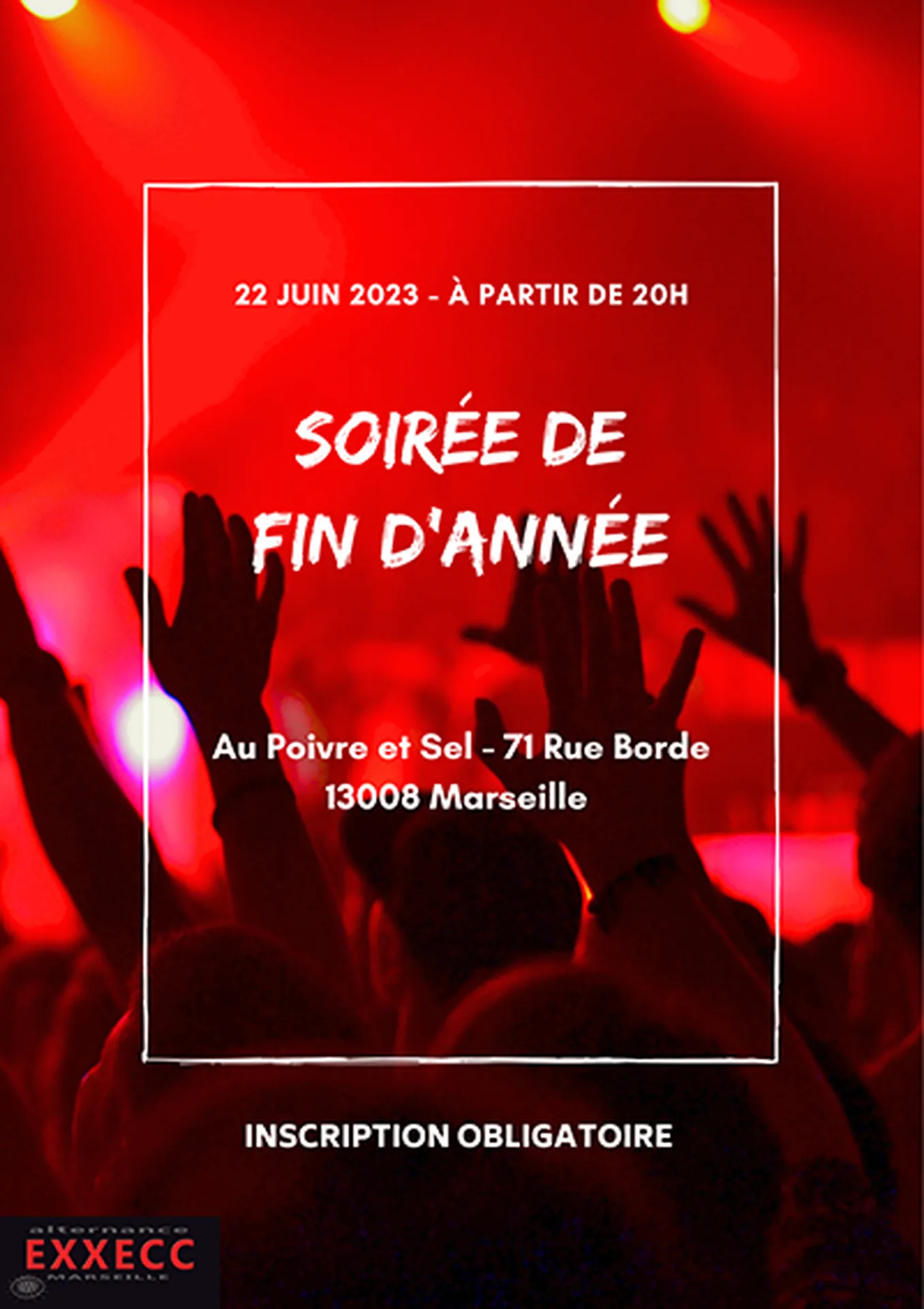 Comme chaque année et afin de clôturer cette année sur une touche festive, nous avons le plaisir de vous convier à la soirée de fin d’année de l’EXXECC le jeudi 22 juin 2023 à 20h00 au :