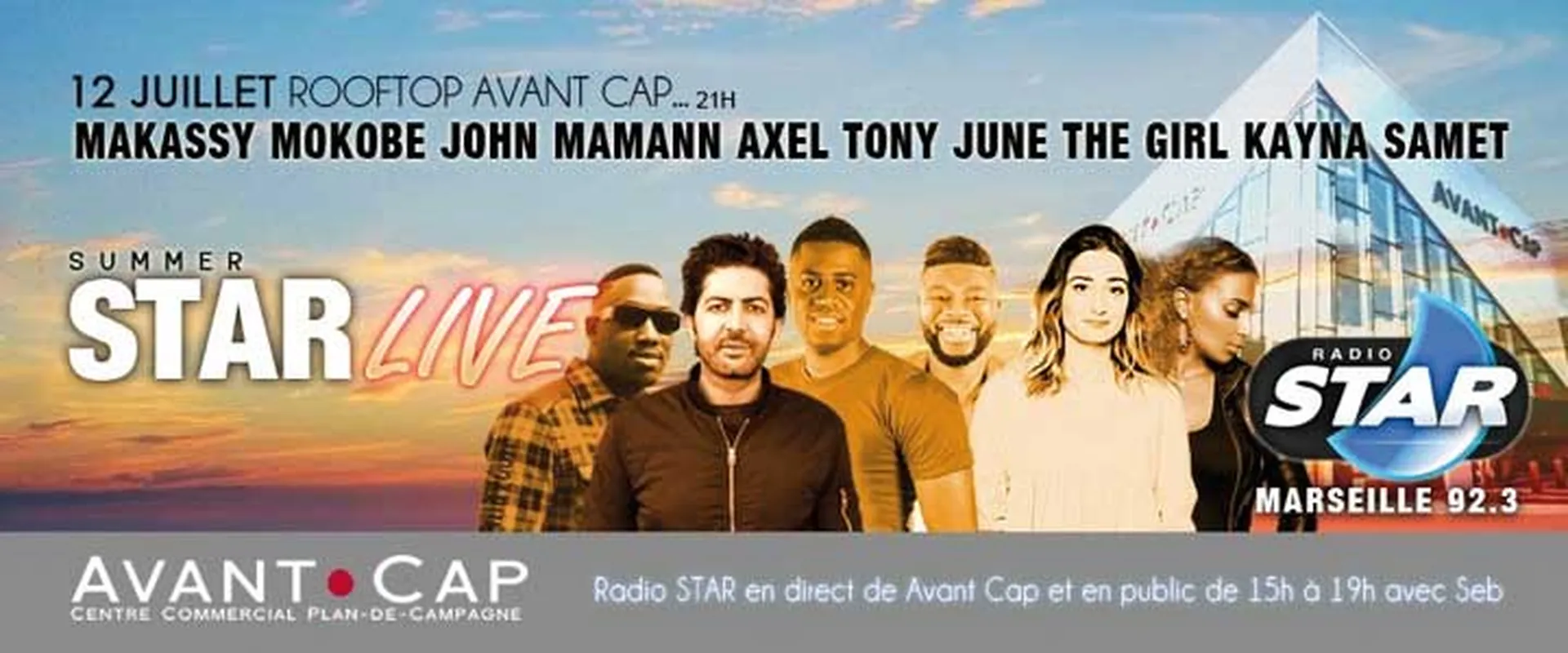 RadioStar Officiel délocalise son antenne pour une émission SPECIALE dans le centre commercial Avant Cap le 15 juillet de 15 à 19h, avec les interviews des différents artistes puis une séance de dédicaces à 17h.